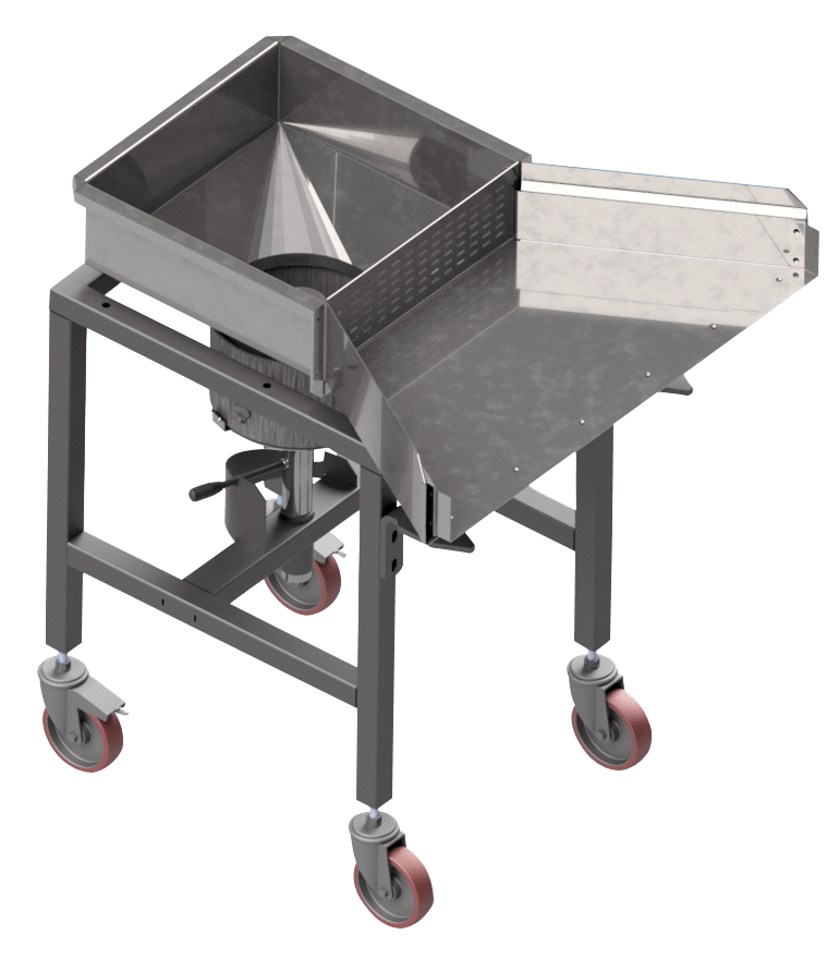 Ręczny wózek służący do przenoszenia prochów i przełożenia ich do specjalnej urny technicznej, kompatybilnej z oferowanym młynkiem do rozdrabniania prochów.